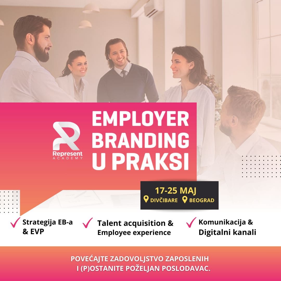 Zašto se mora podsticati čvrsta saradnja između lidera ljudskih resursa i marketinga u stvaranju efikasne strategije brendiranja poslodavca i kako leadership kultura u organizaciji igra ključnu ulogu u uspehu kompanija? Na ova pitanja odgovaraju nam tri predavača Employer brandinga u praksi koji počinje 17. i traje do 25. maja 2024. godine u organizaciji Represent Academy.
