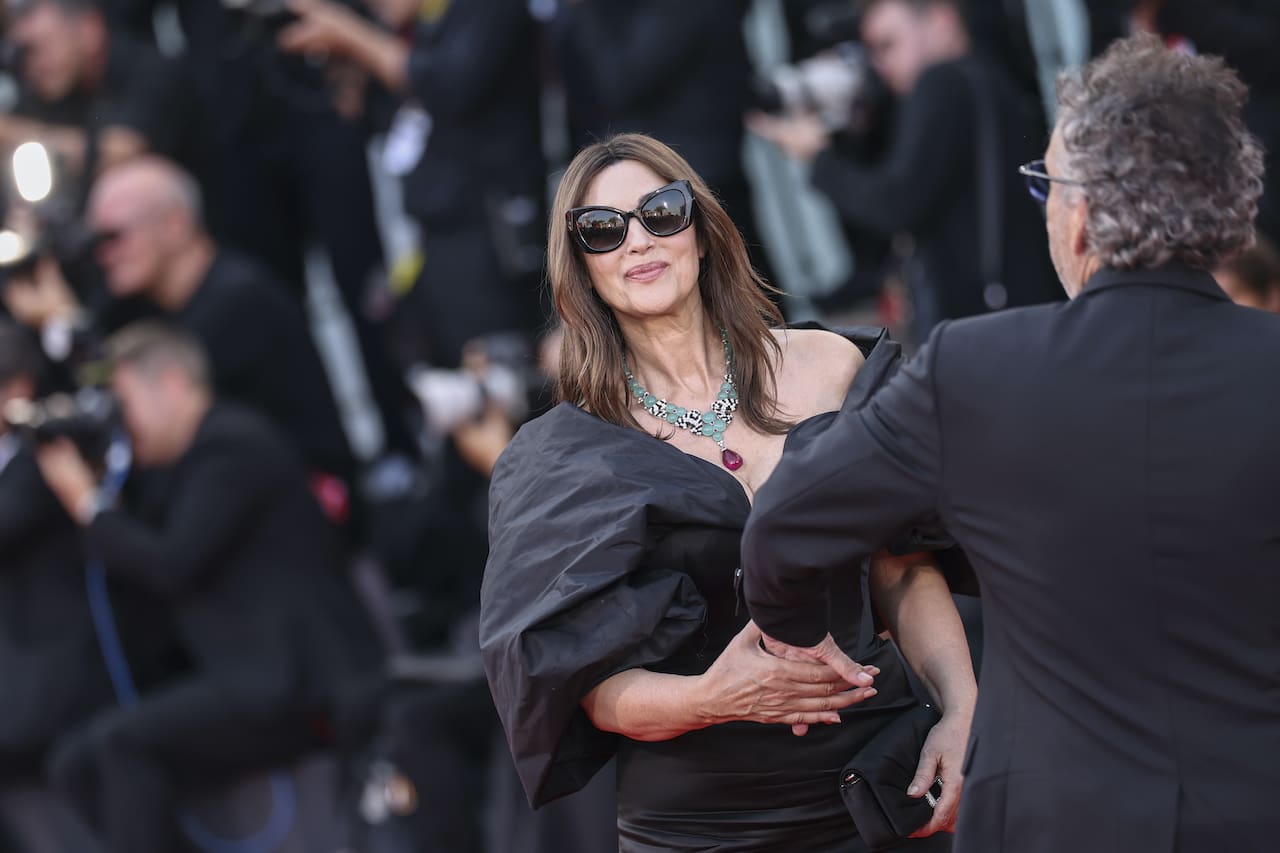Monica Bellucci poses for photographers upon arrival for the premiere of the film ‘Beetlejuice Beetlejuice’ and the opening ceremony of the 81st edition of the Venice Film Festival in Venice, Italy, on Wednesday, Aug. 28, 2024. (Photo by Vianney Le Caer/Invision/AP)