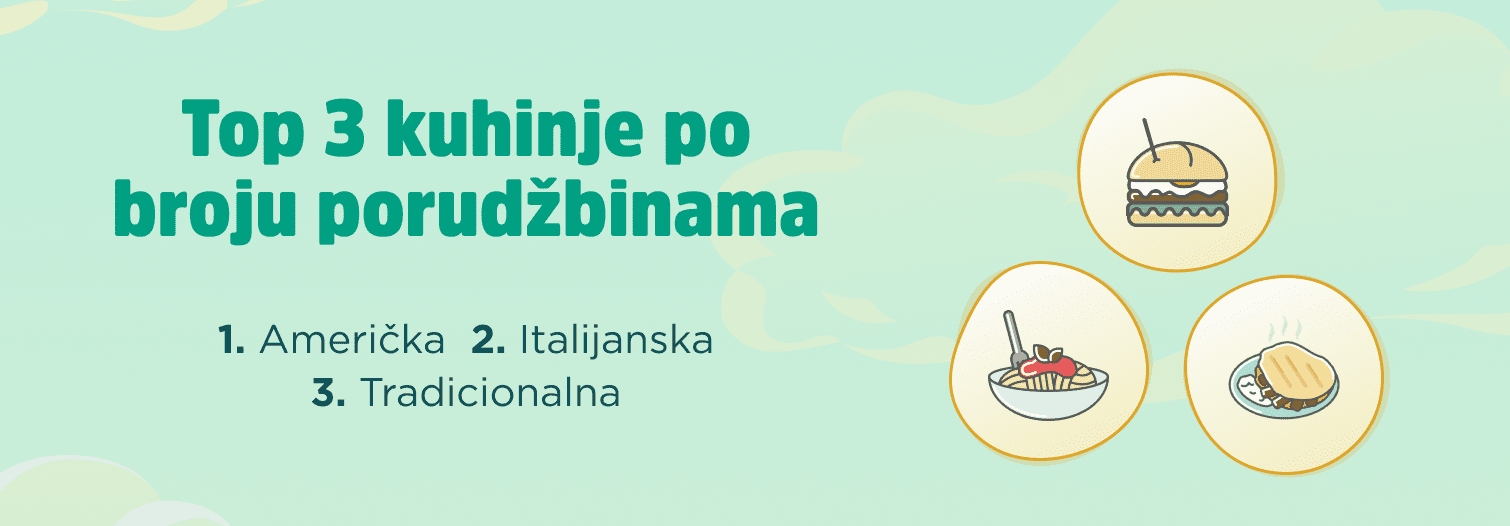 Po tradiciji, Beograd prednjači sa naručivanjem domaće tradicionalne kuhinje, dok je Pančevo zabeležilo najveći rast porudžbina domaće hrane. Što se tiče omiljenih jela domaće srpske kuhinje, to su svakako ćevapi i pljeskavice ali i šopska i srpska salata.