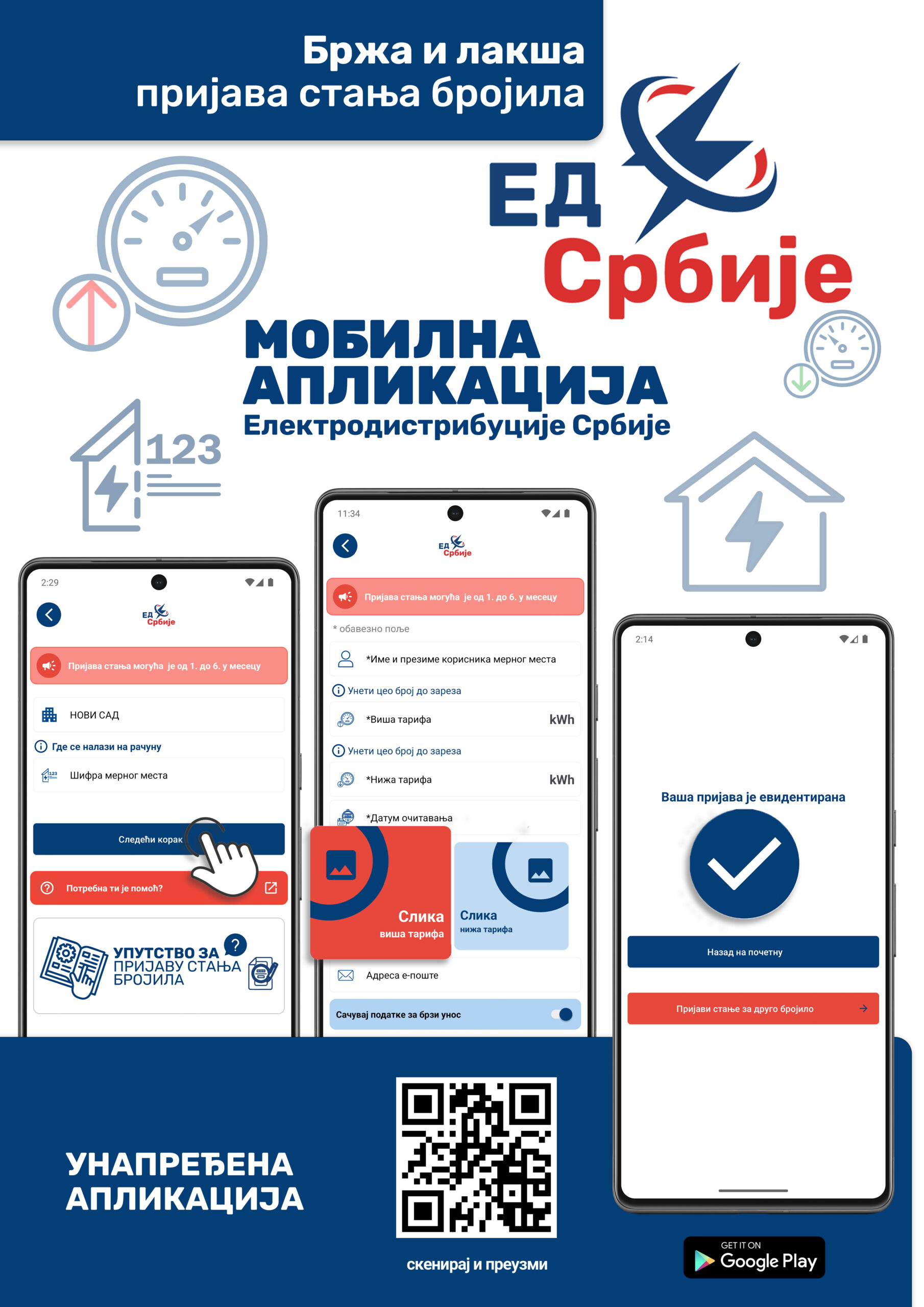 Za jednostavnu prijavu stanja korisnici sa Android mobilnim telefonima instaliraju aplikaciju (preuzmite ovde), dok svi drugi mogu koristiti sajt Elektrodistribucije Srbije – Prijava očitanih stanja.