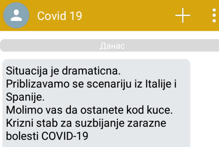 Građanima stiže SMS: Situacija je dramatična, ostanite kod kuće