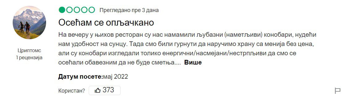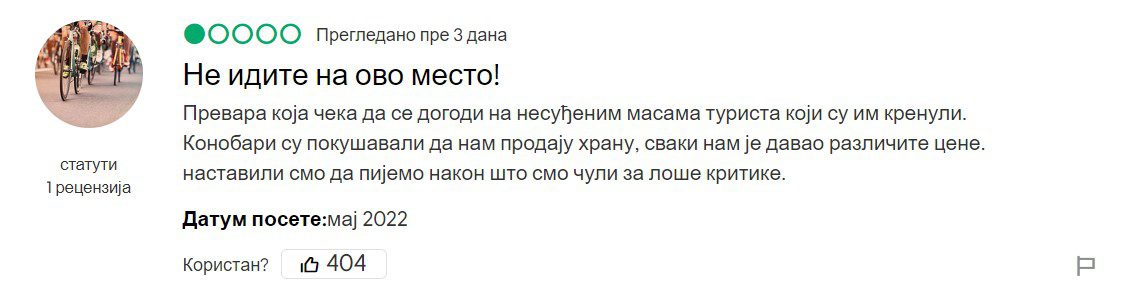 Stranica tog restorana na Tripadvisoru preplavljena je recenzijama gostiju koji tvrde da su bili namamljeni istom strategijom – uporni konobari su im nudili ‘besplatne ležaljke’, imaju nejasne opise cena na meniju, i na kraju s ih dočekivali astronomski računi.