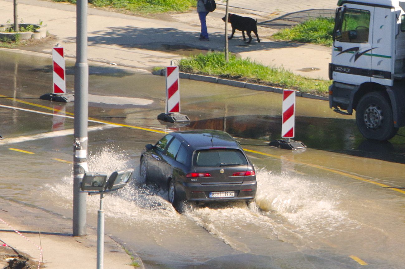 Tokom radova na uređenju ulice na potezu od Trošarine do Sportskog centra Banjica, došlo je do havarije i na vodovodnoj mreži, zbog čega je na glavnoj ruti ka gradu saobraćaj dodatno otežala i velika količina vode na kolovozu.