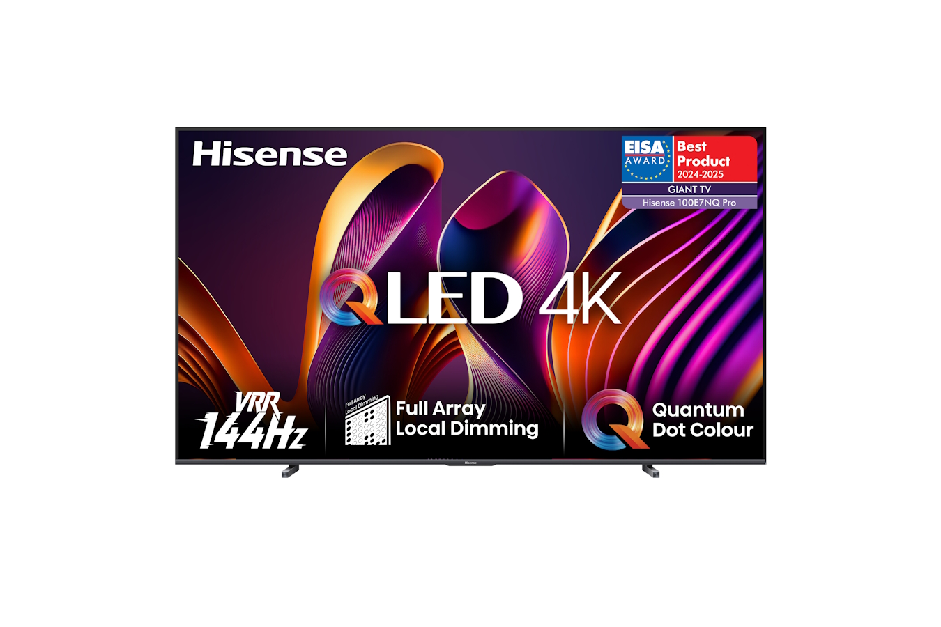 Ove godine i model Hisense 100E7NQ Pro istaknut je u jednoj od najvažnijih kategorija – Giant TV. Evo šta su EISA stručnjaci posebno izdvojili: Hisense 100E7NQ Pro privlači pažnju ogromnim ekranom od 100 inča i performansama slike. Ključna prednost je precizna kontrola LED pozadinskog osvetljenja sa 256 zona lokalnog zatamnjivanja, što omogućava da prikaz ima širok kontrast, snažnu crnu i HDR. Dodatna procesorska snaga omogućava uravnotežene, nijansirane boje, 4K nadogradnju od izvora niže rezolucije i dinamičko mapiranje tona. Dok je prikaz od 100 inča glavna atrakcija, ni zvuk nije zapostavljen – 2.1 zvučni sistem sa subwoofer-om usmerenim ka zadnjem delu obezbeđuje moćan bas i bogat zvuk. Bez obzira na izvor sadržaja, bilo da se radi o Blu-ray filmovima, igrama ili strimovanju sa Hisense VIDAA pametne platforme, 100E7NQ Pro pruža sjajno gledanje – i to po pristupačnoj ceni.