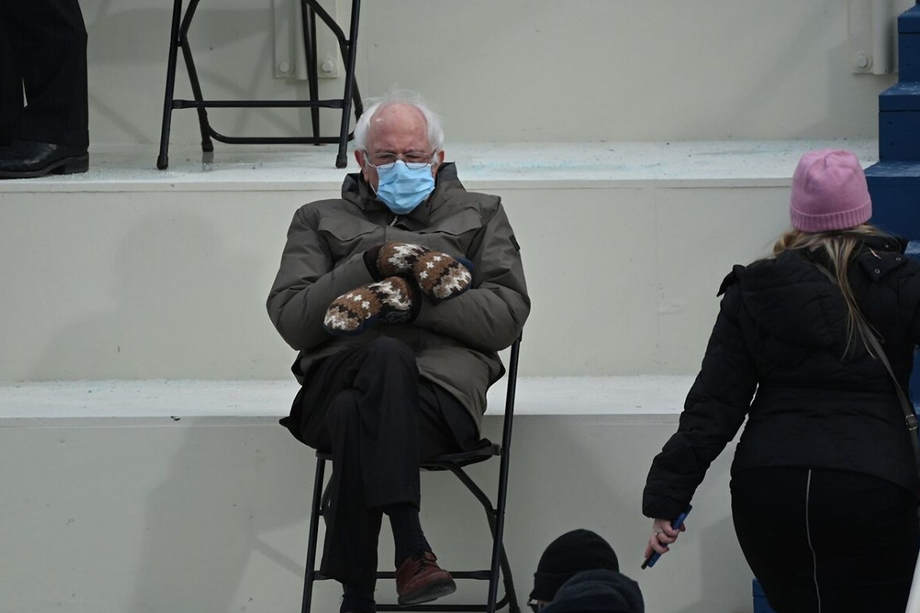 Fotografija fotografa AFP Brendana Smialowskog postala je prvi viralni mem Bajdenove ere pa se Sanders pojavio na svemu, od scena u „Ratovima zvezda“ do „Poslednje večere“ Leonarda da Vinčija.