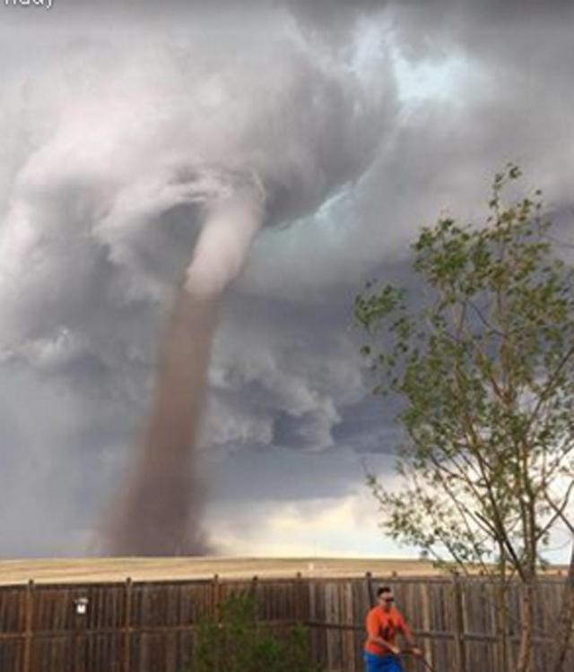 Kada se tornado spustio na varoš Tri Hils (Three Hills) u provinciji Alberta (Kanada), u petak, jedan čovek nije dozvolio da ga bilo šta omete i skloni iz dvorišta.