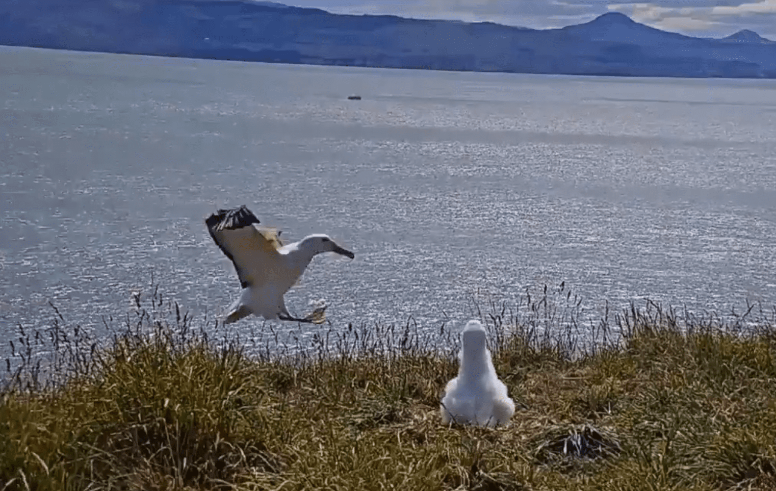 Flying for the albatross is mainly effortless, landing can be a little bit harder. #RoyalCam chick had a front row seat to a ‘how not to land’ lesson.