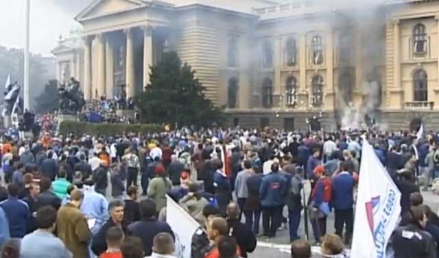 Već u prepodnevnim satima policija je upotrebila suzavac kako bi sprečila demonstrante da udju u zgradu parlamenta, ali bezuspešno. Zgrada Savezne skupštine je demolirana i zapaljena, kao i zgrada RTS-a u Takovskoj ulici.