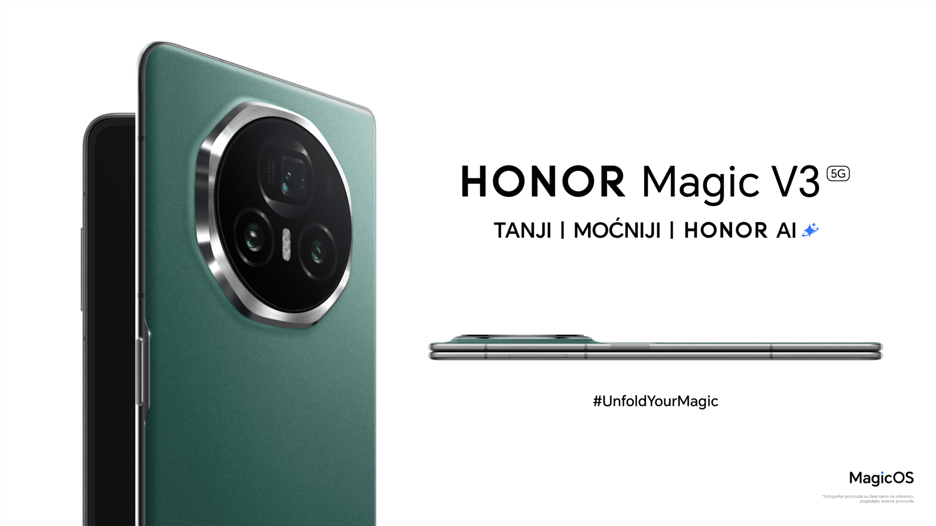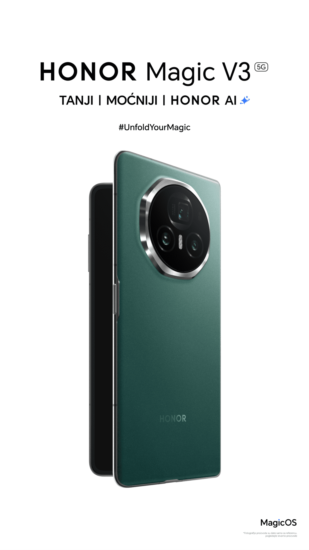 Inspirisan prirodnim lepotama, HONOR Magic V3, najtanji sklopivi telefon, dostupan je korisnicima u Srbiji u zelenoj boji.