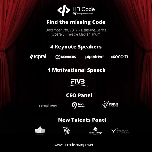Druga po redu konferencija „HR CODE“ biće održana 7. decembra 2017. godine u pozorištu Madlenianum, u organizaciji kompanije ManpowerGroup Srbija.
