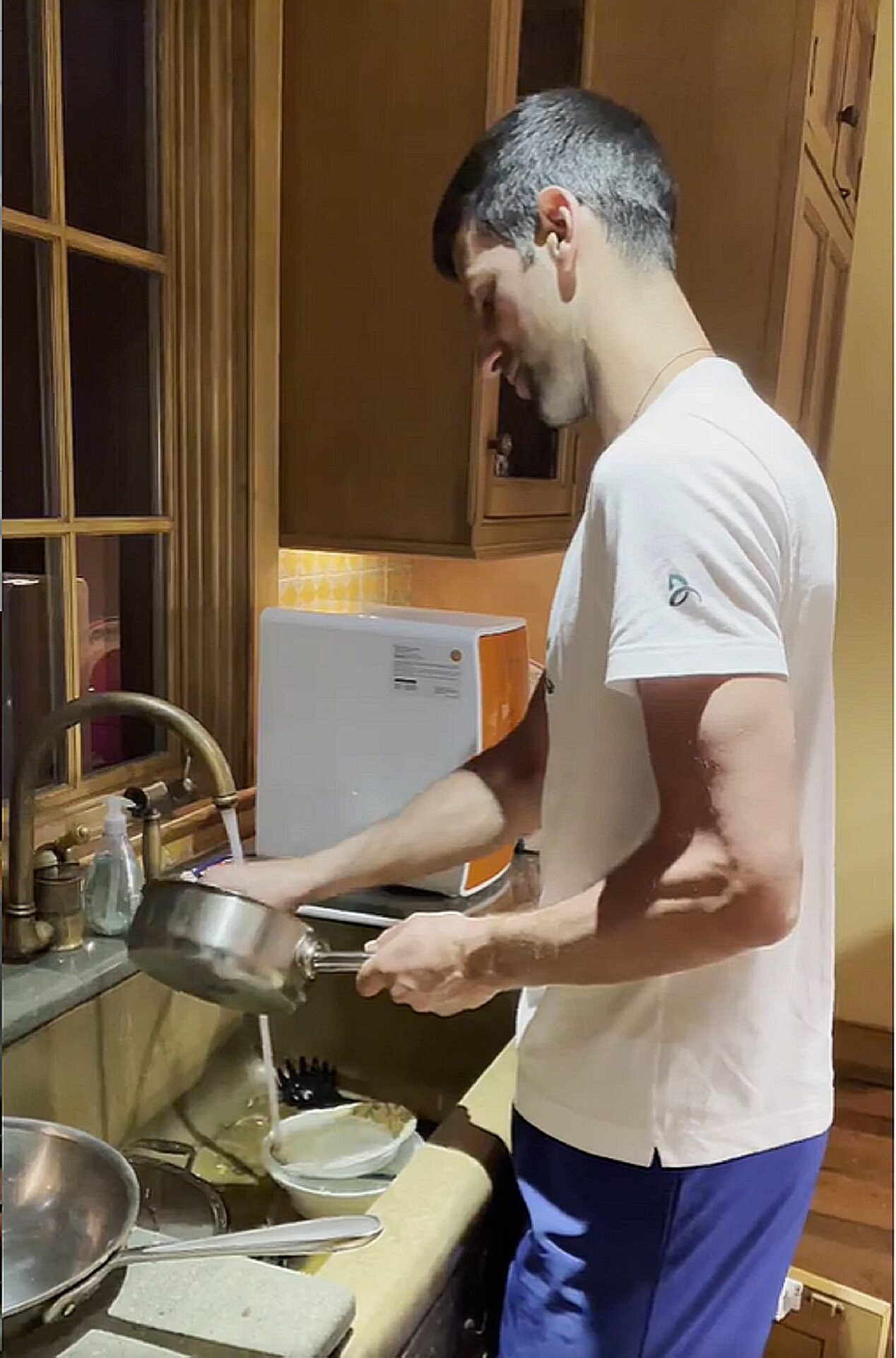„Novakova treća smena. Ovako Novak meditira nakon svog meča na US openu. On je moj MVP u kuhinji“, našalila se Jelena u opisu videa na kom se vidi kako Đoković pere sudove.