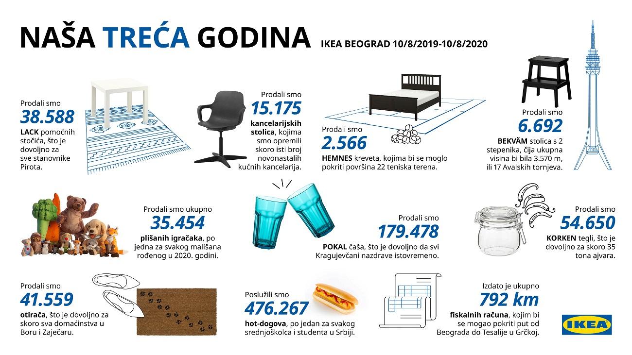 U ponedeljak 10. avgusta IKEA Beograd proslavlja treću godinu poslovanja u Srbiji. Robnu kuću IKEA Beograd je tokom prethodnih 12 meseci obišlo skoro 1.500.000 posetilaca, dok su na veb-sajtu ikea.rs inspiraciju i rešenja za uređenje doma potražili više od 15 miliona puta.