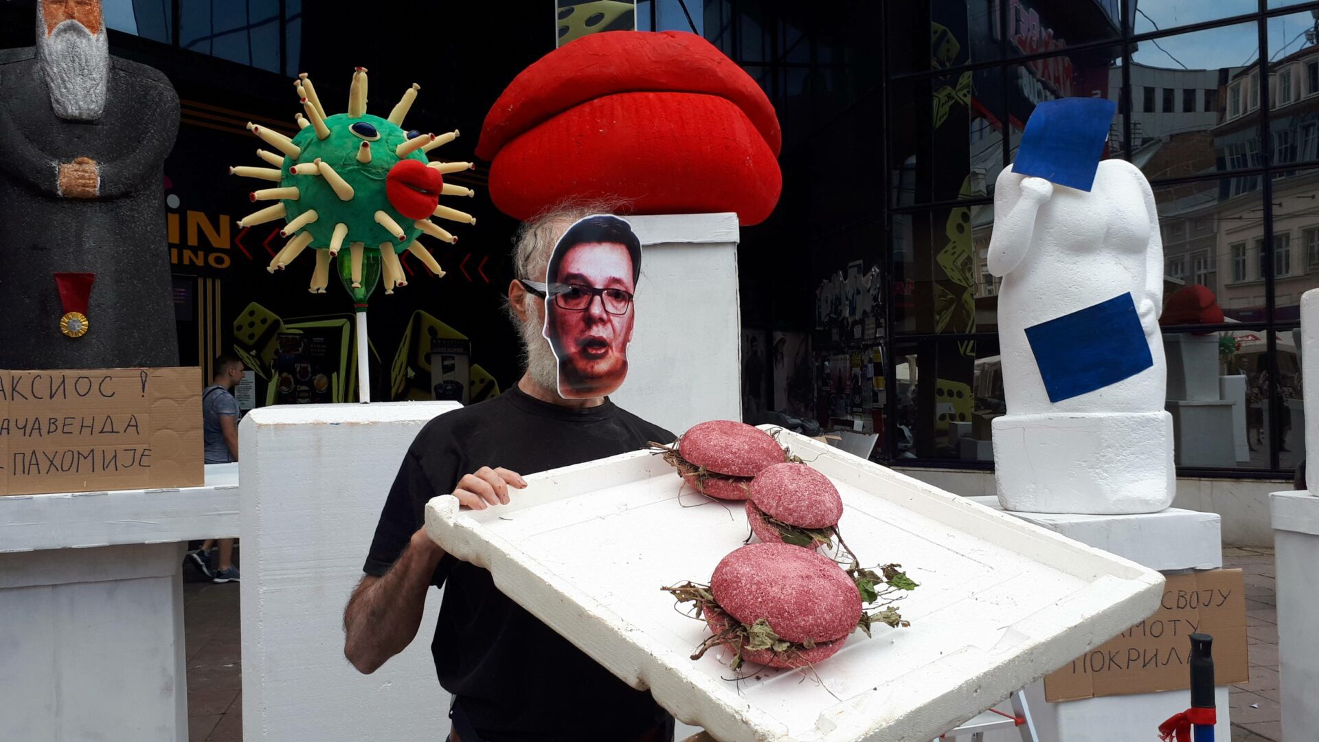 Niš, 31.05.2022. – Umetnik Slavoljub Blagojević je u Nišu organizovao satiričnu inauguraciju predsednika Srbije Aleksandra Vučić (BETA/AP)