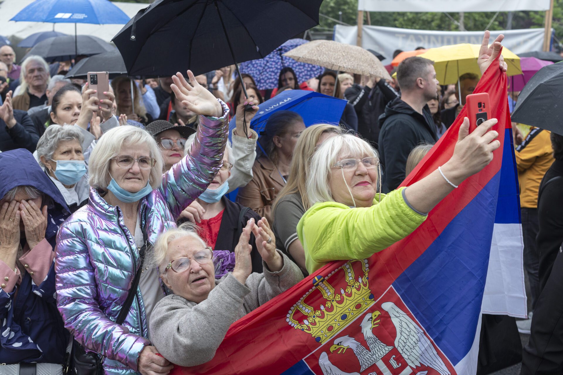 Kako to obično i biva gde god se pojavi predsednik tu su i njegove pristalice. U autobusima, naravno. Jučerašnje okupljanje im je možda pokvarila kiša, ali to im nije smetalo da poslušaju šta to predsednik ima da im poruči.