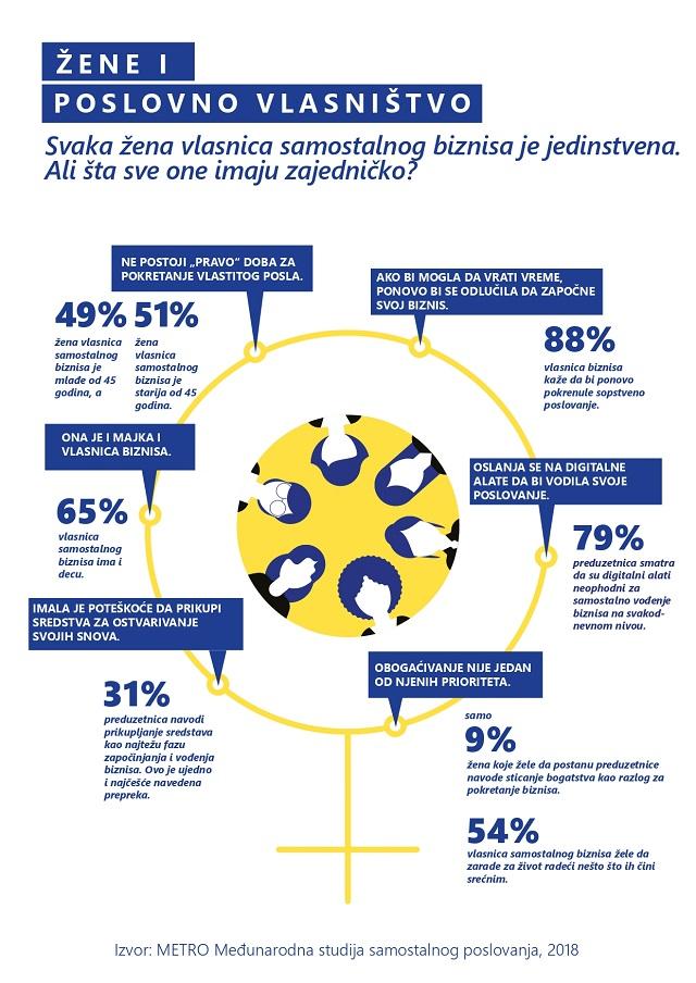 METRO Međunarodna studija samostalnog poslovanja nastoji da bolje razume karakteristike nezavisnog poslovanja širom sveta. Prvi put pokrenuta 2017. godine, studija se u svom drugom izdanju bliže osvrće na percepcije žena – kako onih koje već imaju samostalni biznis, tako i na one koje sanjaju da isti pokrenu.