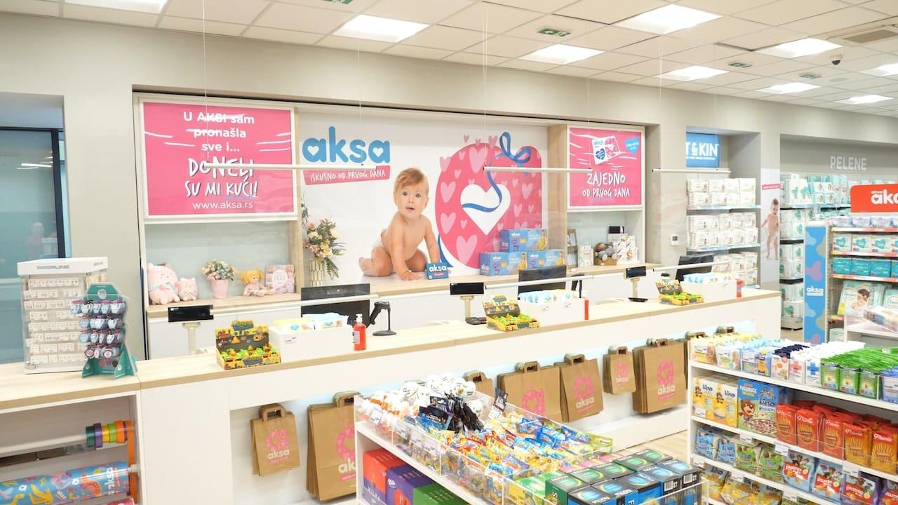 Ponosni smo na to što je Aksa generacijama deo porodičnih radosti i što smo i dalje prvi izbor naših kupaca. Od male prodavnice u Mokroluškoj 3, u naselju Medaković, u Beogradu, koja je naša prva prodavnica, sada brojimo ukupno 24 prodavnice Aksa u 15 gradova u Srbiji i tri prodavnice Aksa u tri grada u Bosni i Hercegovini. Pored toga, naša onlajn prodavnica vam je dostupna 24/7, a od prošle godine možete posetiti i našu prodavnicu Aksa Premium, u „Galeriji Belgrade”.