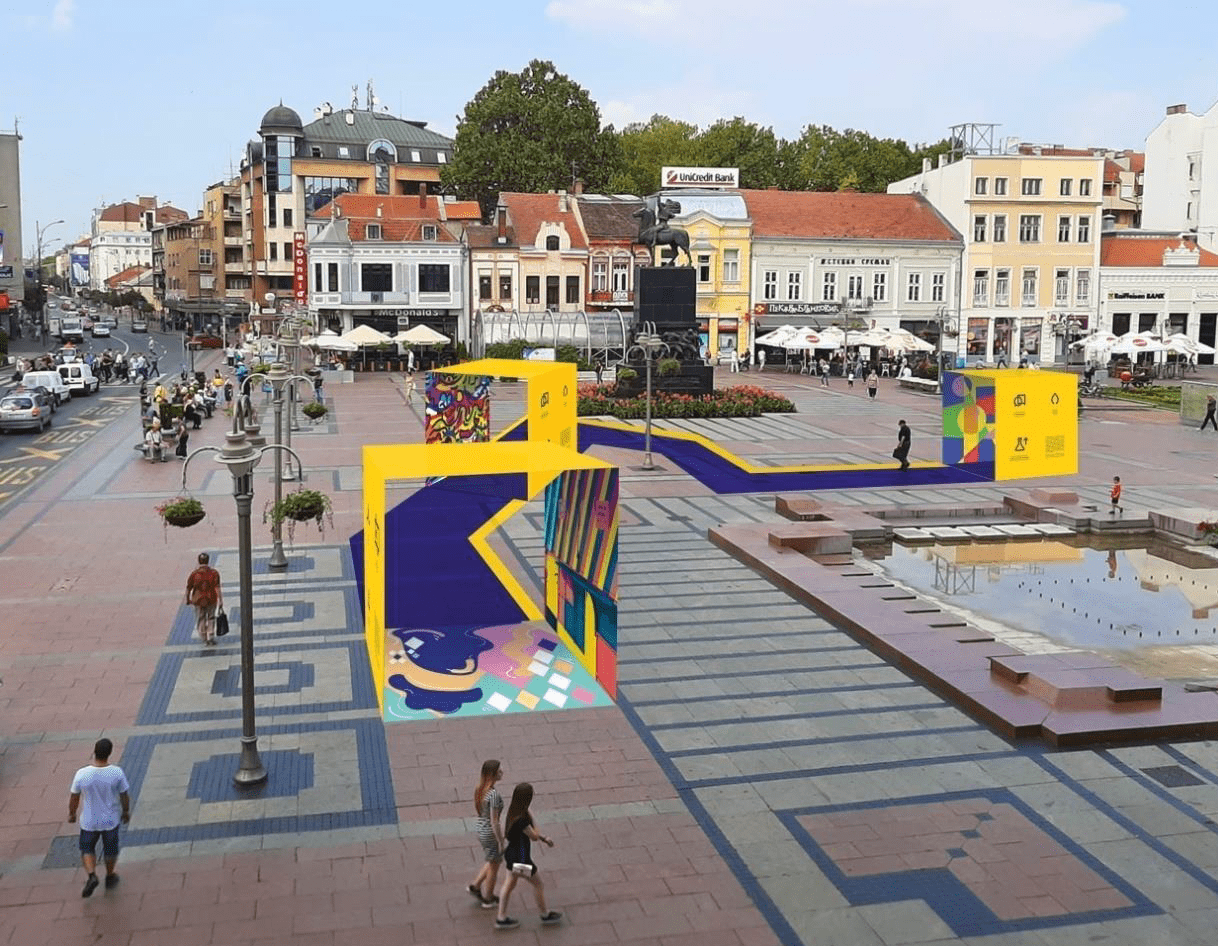 Predlog ideje umetničke interaktivne instalacije prikazuje tri objekta u vidu prolaza/kapija povezanih stazom, koja odvojene objekte integriše u jednu celinu. Svaka kapija je osmišljena tako da sa spoljašnje strane prikaže piktograme, koji simbolišu neku od poruka EU u vidu piktograma za jednakost, privredni rast, ravnopravnost, jezičku raznolikost, bezbednost, društveni napredak, mir, dostojanstvo, ekologiju, tradiciju, slobodu, toleranciju, inkluziju, rast, naučni i tehnološki napredak, pravdu, stabilnost i solidarnost. Pored vizuelnog doživljaja 3D objekata, naš predlog upotpunjuje i aplikacija za proširenu realnost (Augmented Reality), preko koje će posmatrači moći da stupe u interakciju sa objektima, skeniranjem prethodno odredjenih markera (piktograma i delova digitalnih grafika sa unutrašnje strane objekta. (tim departmana za primenjene umetnosti Fakulteta umetnosti Univerziteta u Nišu)