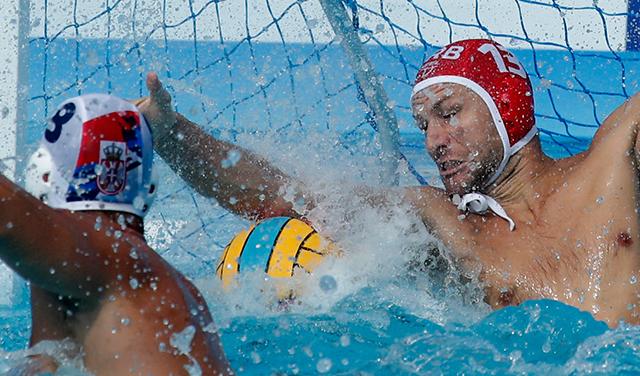 Branislav Mitrović, golman vaterpolo reprezentacije Srbije, posle osvajanja četvrte uzastopne titule prvaka Evrope