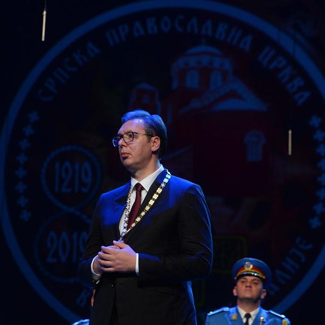 Predsednik Aleksandar Vučić odlukom Sinoda SPC, odlikovan je Ordenom Svetog Save prvog stepena.