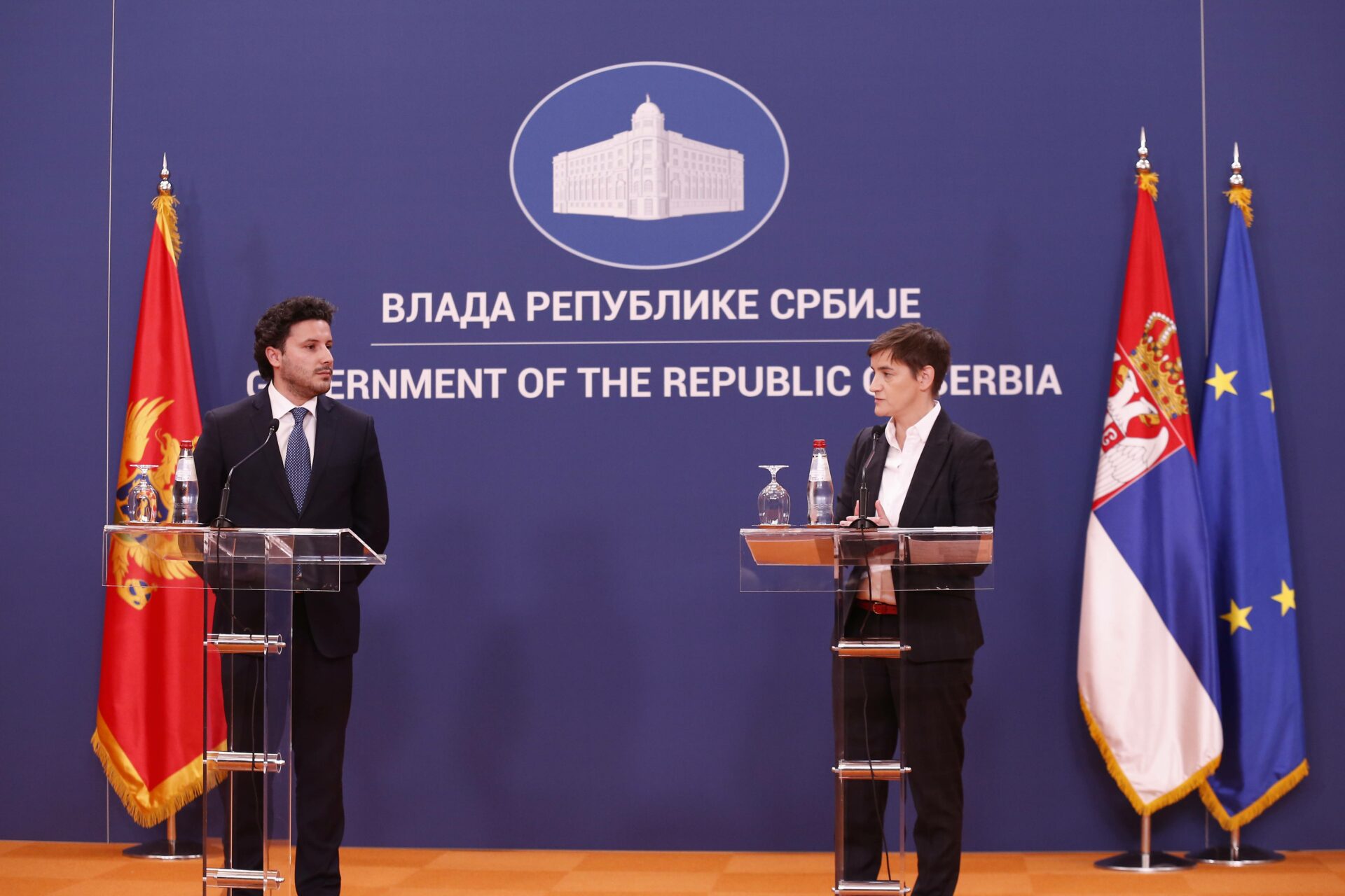 Predsednica Vlade Srbije Ana Brnabić na konferenciji za novinare sa premijerom Crne Gore Dritanom Abazovićem. pic.twitter.com/Jzh9Qk8fVq