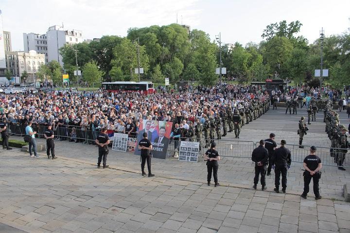 Beograd, 11.05.2020. – Pripadnici Zandarmerije ispred Skupstine Srbije razdvajajui pristalice Srpske napredne stranke od gradjana koji podrzavaju Boska Obradovica. Samostalni poslanik Skupstine Srbije Miladin Sevarlic stupio je juce u strajk gladju zbog nemoguccnosti da pokrene skupsinsku raspravu o povredama teritorijalnog integriteta i suvereniteta Srbije u juznoj pokrajini Kosovu i Metohiji, a u tome mu se pridruzio poslanik i vodja Dveri Bosko Obradovic. Ubrzo su im se ispred ulaza u Dom narodne skupstine prikljucili poslanici Srpske napredne stranke Sandra Bozic i Aleksandar Martinovic, koji zahtevaju pokretanje istrage protiv Boska Obradovica zbog nedavnog ometanja poslanika da prisustvuju sednici skupstine. (BETAPHOTO/LUKA FILIPOVIC/DS)