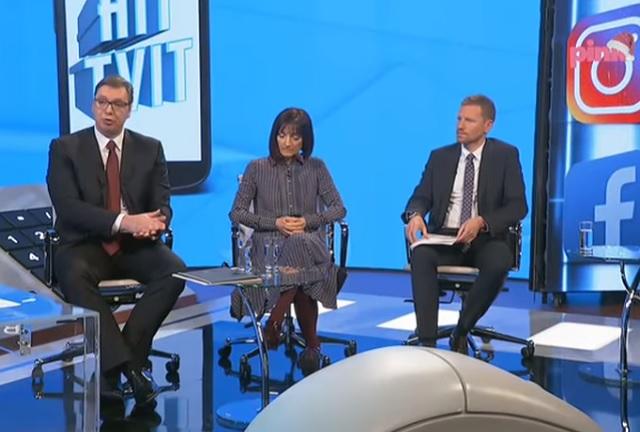 Predsednik Srbije Aleksandar Vučić gostovao je sinoć u emisiji „Hit tvit“ , a u jednom trenutku voditeljka Verica Bradić upitala ga je ko radi za njega, Dragan Đilas i Jovo Bakić?