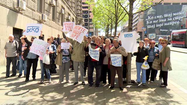 Vlasnici akcija beogradske konfekcije Beko juče su ponovo protestovali ispred Vlade Srbije tražeći da im se podeli 50 odsto novca od 29 miliona evra koliko je sada na računu te firme posle prvostepenog završetka svih sudskih sporova oko potraživanja.