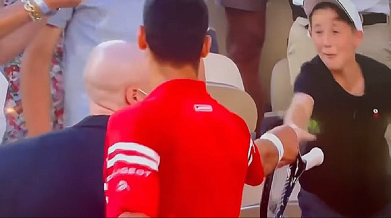 Srpski teniski as Novak Đoković osvojio je posle preokreta Rolan Garos a pažnju javnosti posebno je skrenuo potezon na kraju meča, kada je mališanu pored terena poklonio svoj reket. Dečakovo beskrajno oduševljenje zabeležile su kamere a Novak je objasnio zašto je reket poklonio baš njemu.