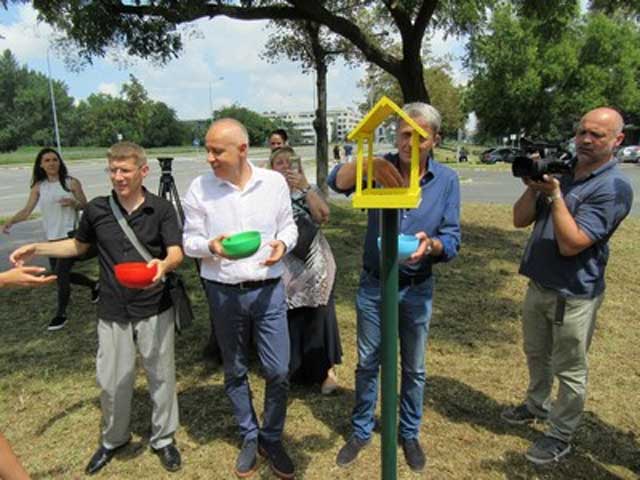 “Vrapci, samo zdravu hranu. Pišemo ‘đevrek – ne’”, rekao je Radojičić dok je punio hranilicu.