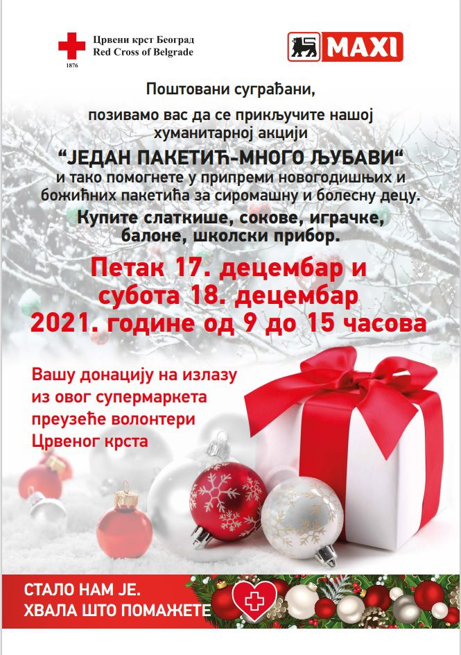 Akcija prikupljanja biće održana u petak 17. i u subotu 18. decembra u 21 Maxi supermarketu u Beogradu. Svoje darove građani mogu ostaviti u kutije na izlazu iz prodavnica ispred kojih će dežurati volonteri od 9 do 15 časova.