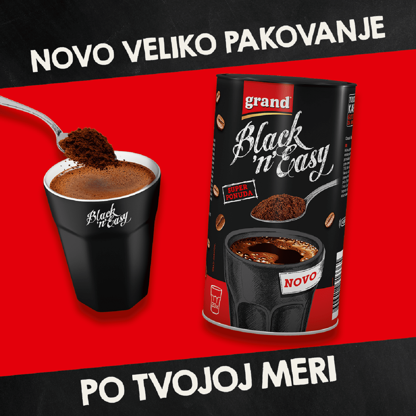 Ako ne možete da zamislite savršen početak i produktivan ostatak dana bez one prve jutarnje kafe, sigurno već uveliko uživate u punom ukusu prave turske Grand Black’n’Easy kafe. Od sada ćete moći da uživate u dozi baš po vašoj meri i svoje jutro započnete uz novo veliko Black’n’Easy pakovanje.