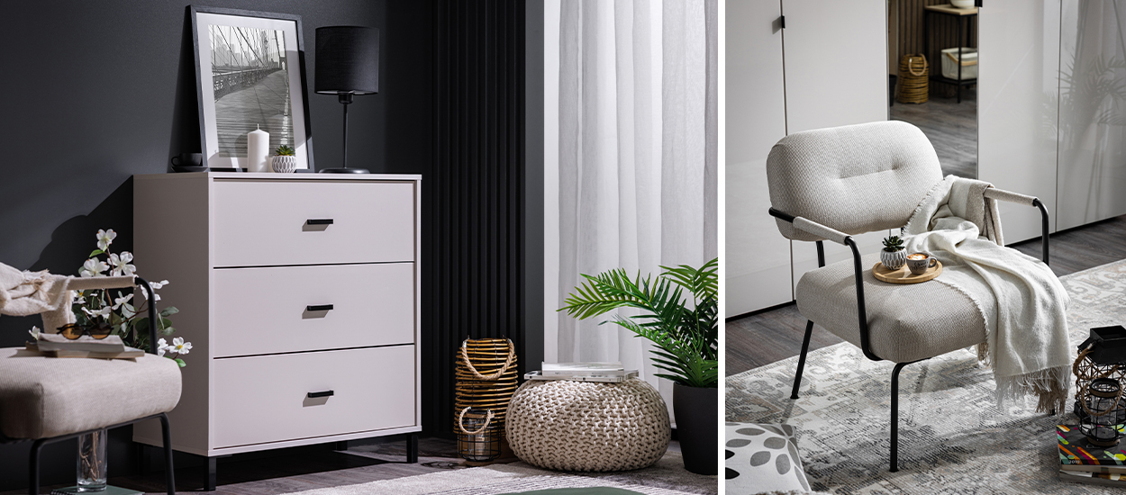 Za kutke koji traže komfor, fotelja je komad nameštaja na koji uvek prvo pomislimo – idealna za uživanje i opuštanje uz omiljenu knjigu. Fotelja DILLON je rešenje za takav ambijent i željeni efekat. Bilo da je reč o dnevnom boravku ili opremanju poslovnog prostora, uz njenu pomoć ćete oživeti neprolaznu retro dizajnersku notu. Jedinstven dizajn se ogleda u detaljima poput razdvojenog naslona od sedišta u bež štofu, dok kontrast pruža crna metalna konstrukcija.