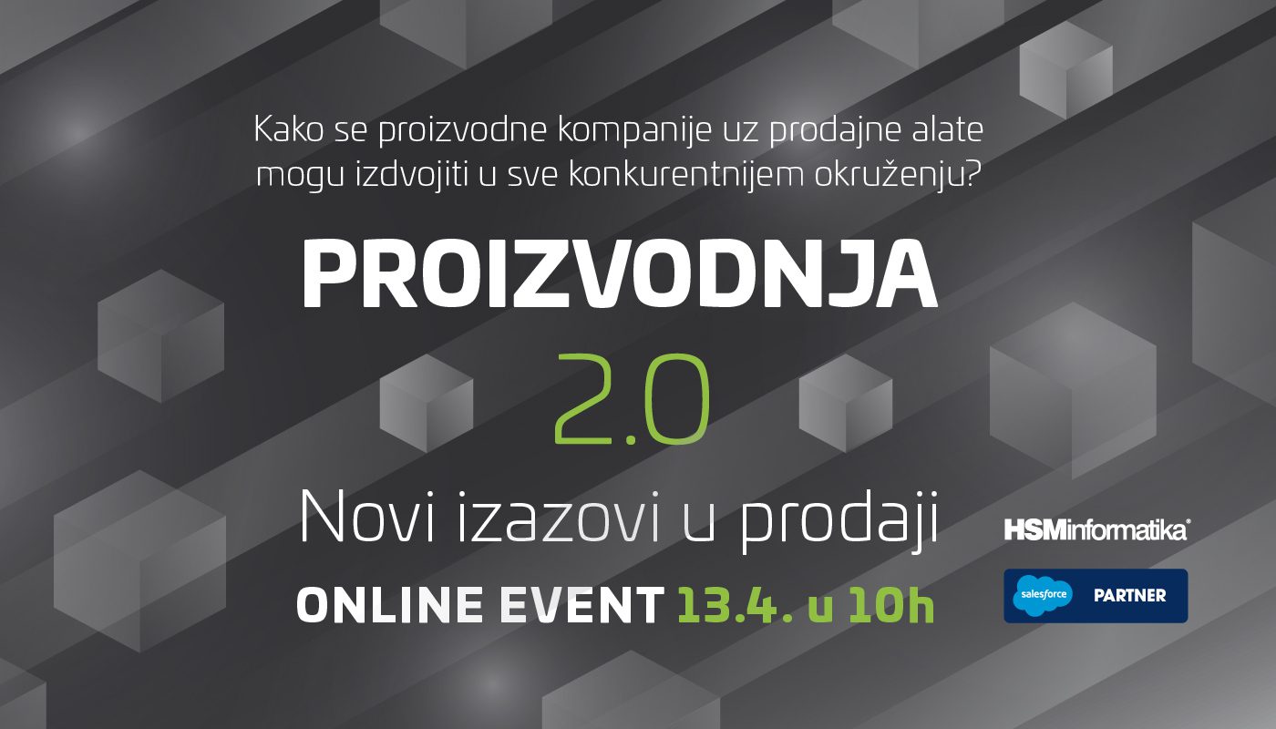 Upravo zbog kompleksnosti prodajnog procesa proizvodnih kompanije u novim okolnostima HSM informatika odlučila je da svoj sledeći online event, Proizvodnja 2.0 – Novi izazovi u prodaji, posvetiti baš njima.