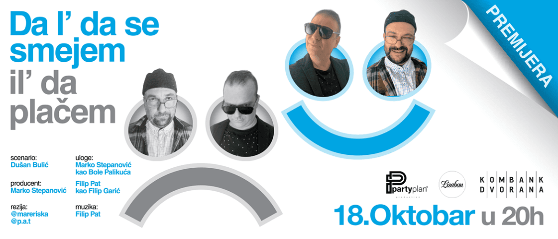 Premijera kabarea „Da l’ da se smejem il’ daplačem“, u izvođenju Marka Stepanovića – glumca i voditelja popularne emisije Mentalno razgibavanje i poznatog violiniste Filipa Pata- biće održana u petak 18. oktobra u 20h u Jazz kantini Lisabon ( ulaz iz Čavketovog prolaza).