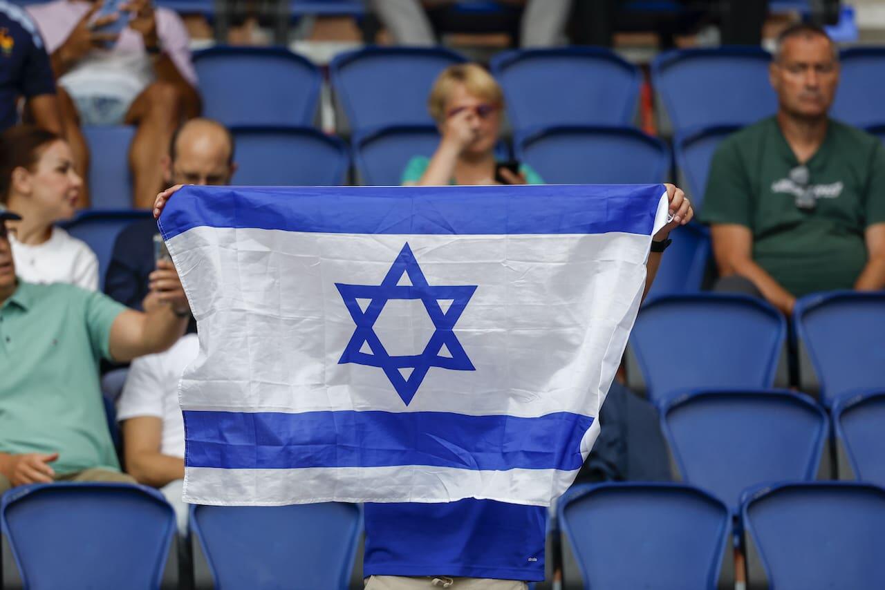 An Israel fan holds up a flag (AP Photo/Aurelien Morissard)