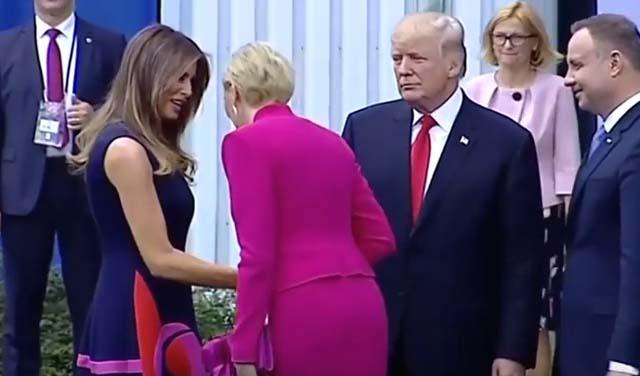 Prva dama Poljske Agata Kornhauzer-Duda smatrala je da, i pored toga što je Tramp već pružio ruku, treba prvo da se pozdravi sa njegovom suprugom Melanijom.