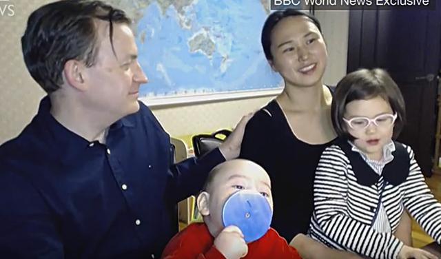 Dok je profesor Robert Keli (Robert Kelly), ekspert za politička pitanja, davao izjavu za BBC preko Skajpa (Skype), u svom domu, slučajno je u kadar uletela njegova četvorogodišnja devojčica. A zatim i njen devetomesečni brat. U sobu odmah uleteće Azijatkinja (Jung-a Kim – kasnije će se ispostaviti njegova žena) i odvodi decu. I to je otprilike sve što se desilo. Ali, to je samo početak priče. Internet, odnosno ljudi na internetu, učinili su svoje. Video je podeljen preko 10 miliona puta. Pojavio se i kod nas na RTS-ovom Dnevniku u udarnom terminu.