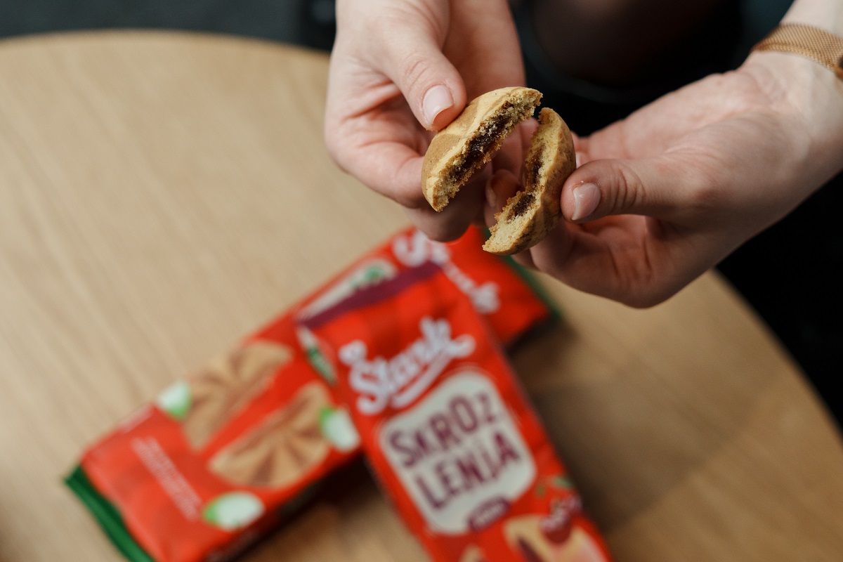 Štarkov keks „Skroz Lenja“ upravo to radi – zadržava prepoznatljiv ukus lenje pite, ali ga donosi u formi koja odgovara današnjim navikama. Reč je o praktičnom desertu sa ukusom jabuke ili všnje, spremnom za konzumaciju, koji ne traži pripremu, ali ne odstupa od onoga što očekujemo: sočan voćni fil, prepoznatljiv ukus i teksturu koja podseća na domaće verzije ovog kolača.