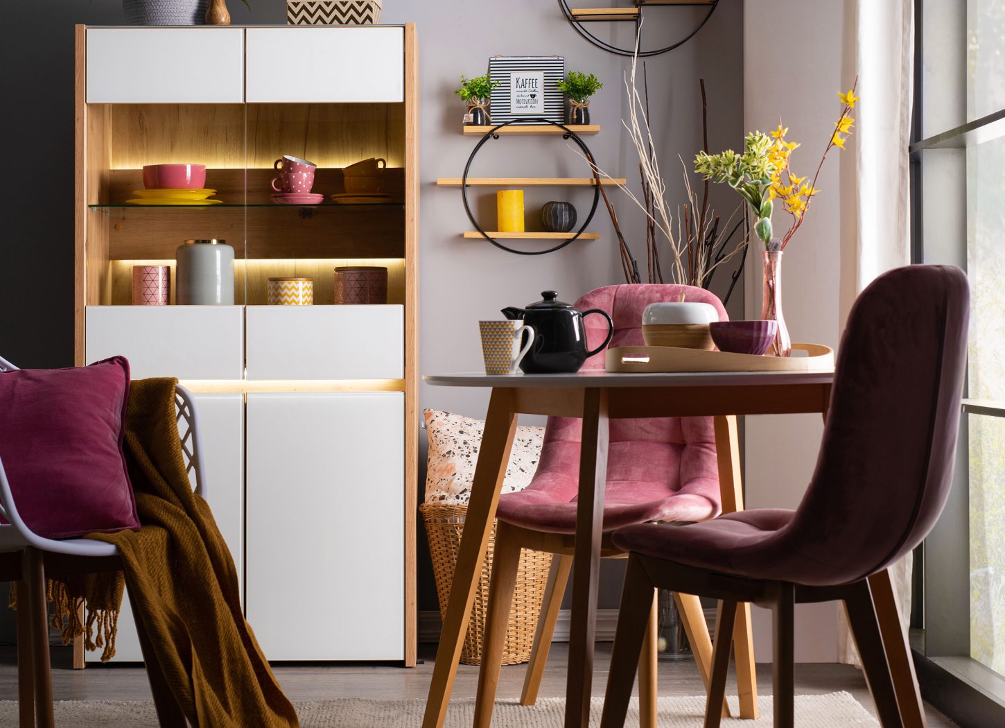 Za uređenje trpezarijskog ambijenta možete odabrati trpezarijski sto MAX S kao akcentni komad, a stolice koje možete kombinovati uz njega su trpezarijske stolice G603 u roze štofu sa drvenim nogarima, ili trpezarijska stolica PS-802 koja je istovremeno i funkcionalna i udobna. Stolice postavite sa 3 strane umesto na 4 strane, kako bi sto dobio asimetričnu notu.