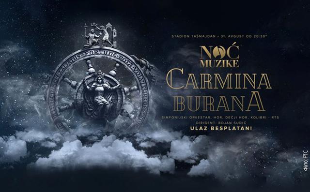 Simfonijski orkestar, Hor, Dečji hor i Kolibri RTS, Akademski hor „Obilić“, uz soliste, soprana Aleksandru Jovanović, tenora Aleksandra Tolimira i baritona Dragutina Matića, pod dirigentskom palicom maestra Bojana Suđića izvešće sutra na Tašmajdanu scensku kantatu „Karmina Burana“ Karla Orfa, u okviru manifestacije „Noć muzike“, prenosi RTS.