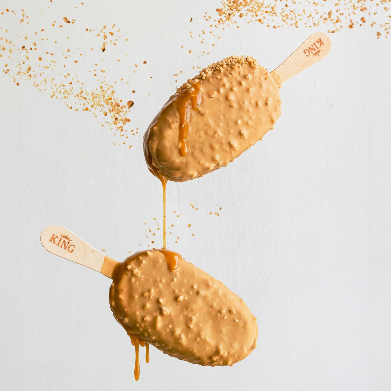 King Supreme donosi savršen balans slane karamele, jednog od najpoželjnijih ukusa na svetu. Sladoled je obogaćen mlečnom karamelom, umotan u ukusan preliv od slane karamele, belu čokoladu s ukusom karamele i hrskave komadiće keksa, stvarajući neodoljivu kombinaciju ukusa i tekstura. Za ljubitelje voćnih ukusa, uskoro u zamrzivače dolazi i King Seduction. Hrskavi spoljašnji sloj prepoznatljive King čokolade s komadićima badema, sladoled s ukusom panakote, uz središnje punjenje jagode čine King Seduction savršenim izborom za sve ljubitelje kremastih tekstura i osvežavajućih ukusa.