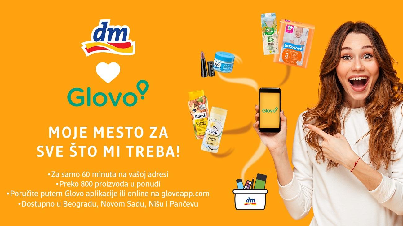 Kompanija dm drogerie markt, u saradnji sa Glovom, pokrenula je novu uslugu kojom je omogućena dostava proizvoda iz dm-a na kućnu adresu. Putem Glovo zvaničnog sajta ili aplikacije kupci mogu da poruče proizvode koji će im biti dostavljeni za najviše 60 minuta.