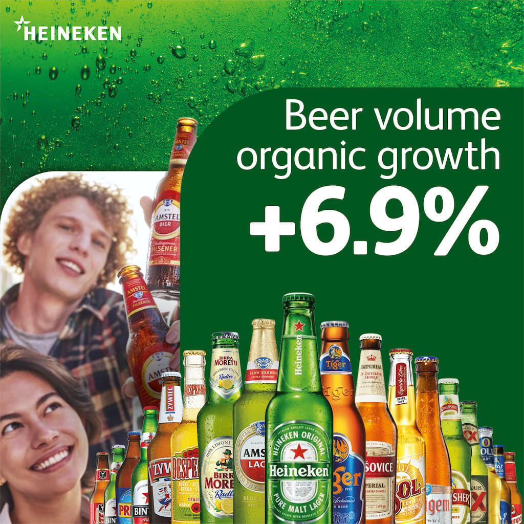 U saopštenju kompanije se navodi da je organski rast ukupnih volumena piva iznosio 6,9%, Volumena premium piva 11,4%, a Heineken volumena 12,5%.