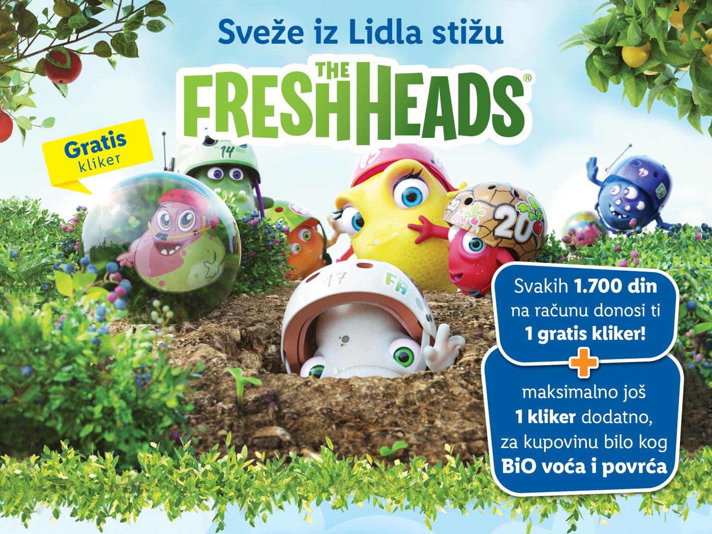 Banana Bane, borovnica Borko, limun Nadica samo su neki od likova iz bašte na klikerima koji će Lidlovi potrošači osim u prodavnici, moći i virtuelno da sakupljaju na „The Fresh Heads“ aplikaciji skeniranjem QR koda koji se dobija uz svaki kliker. U pratećoj ponudi mogu se pronaći vrećica za nošenje klikera i album.