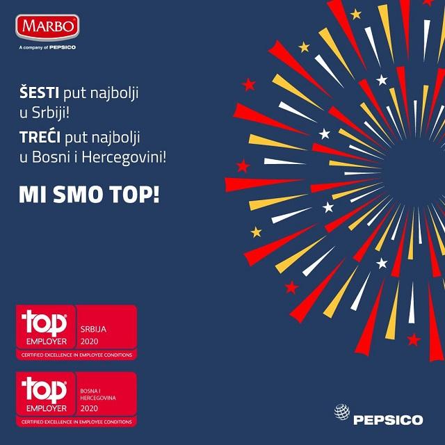 Kompanija Marbo Product, koja posluje kao deo globalne kompanije PepsiCo za područje Zapadnog Balkana, i ove godine je dobitnik prestižnog priznanja Top Employer za poslovanje u Srbiji i Bosni i Hercegovini. Kompanija ovo priznanje dobija već rekordni, šesti put za redom, a na osnovu evaluacije više od 600 najboljih HR praksi koje se tiču upravljanja ljudima i procesima u ljudskim resursima. Ovo prestižno priznanje dodeljuje „Top Employers“ Institut iz Holandije.