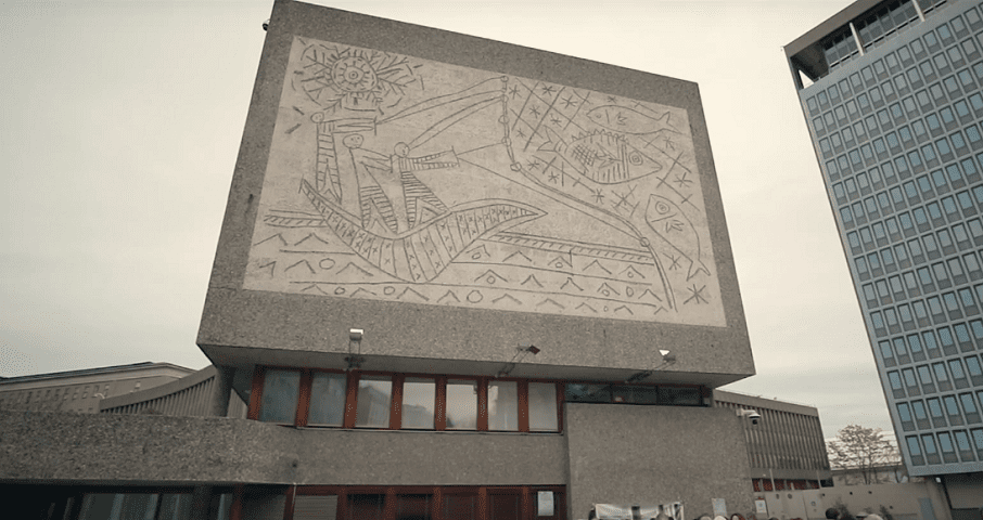 Ova specifična građevina zvana Y-Block nastala je 1969. godine, prema projektu arhitekte Erlinga Viksjoa, a najveća specifičnost je u tome da njenu fasadu krase dva murala koja su delo Pabla Pikasa i norveškog umetnika Nesjara.