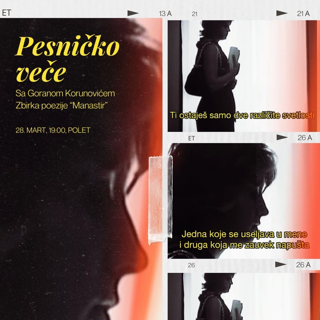 Događaj je najavljen za četvrtak, 28. mart u 19 časova, u Poletu (Cetinjska 15), a ulaz je slobodan.
