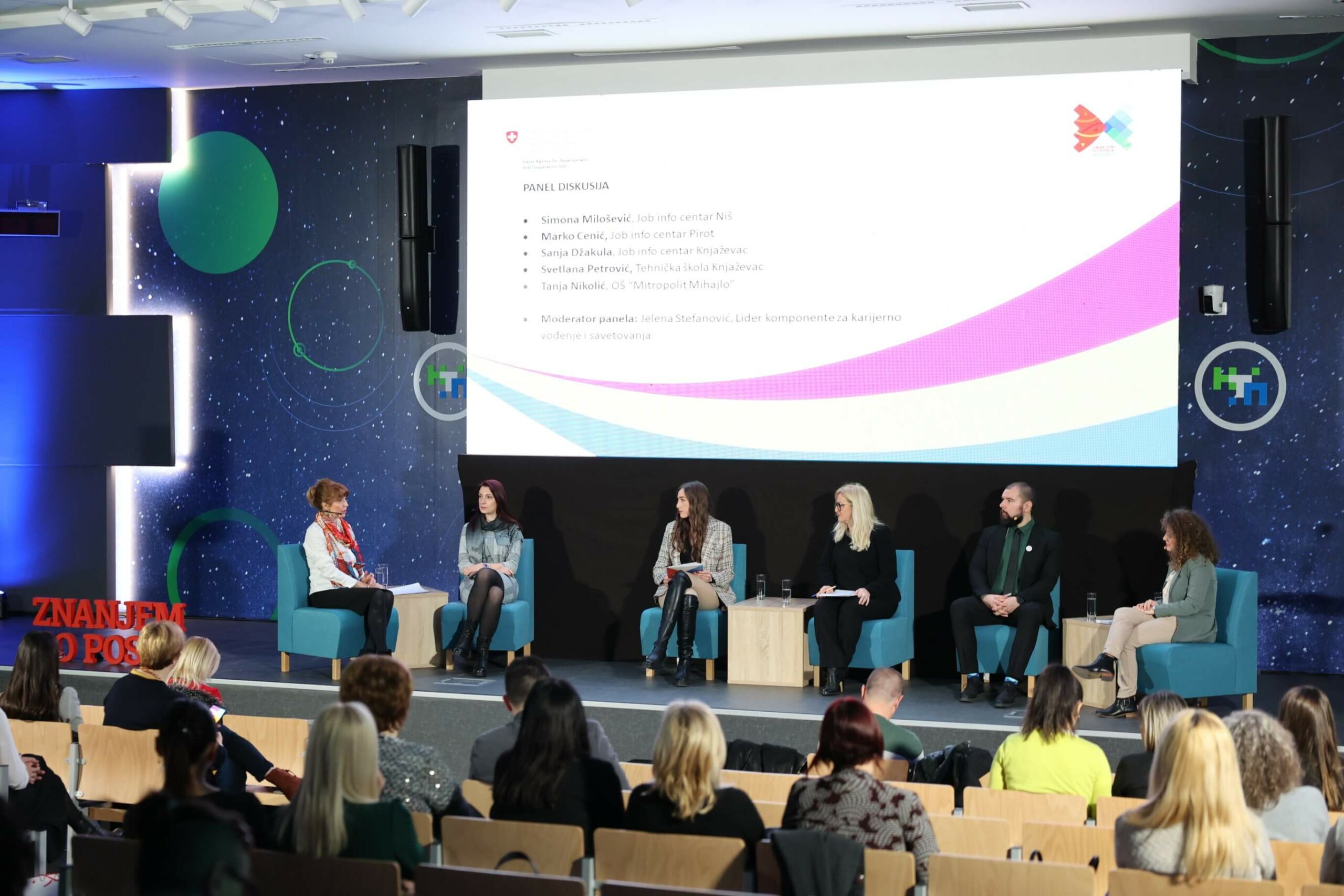 Predstavljanje usluga KViS-a pratila je i panel diskusija na kojoj su svoja iskustva učešća u projektu podelili karijerni praktičari iz Job info centara iz Niša, Pirota i Knjaževca, kao i predstavnici škola iz Knjaževca i Sokobanje. Učesnici panela složili su se da su napredni alati za afirmaciju karijernog napredovanja mladih značajna podrška u prevazilaženju nezaposlenosti mladih, naročito u manjim sredinama, ali i snažan generator budućeg razvoja.