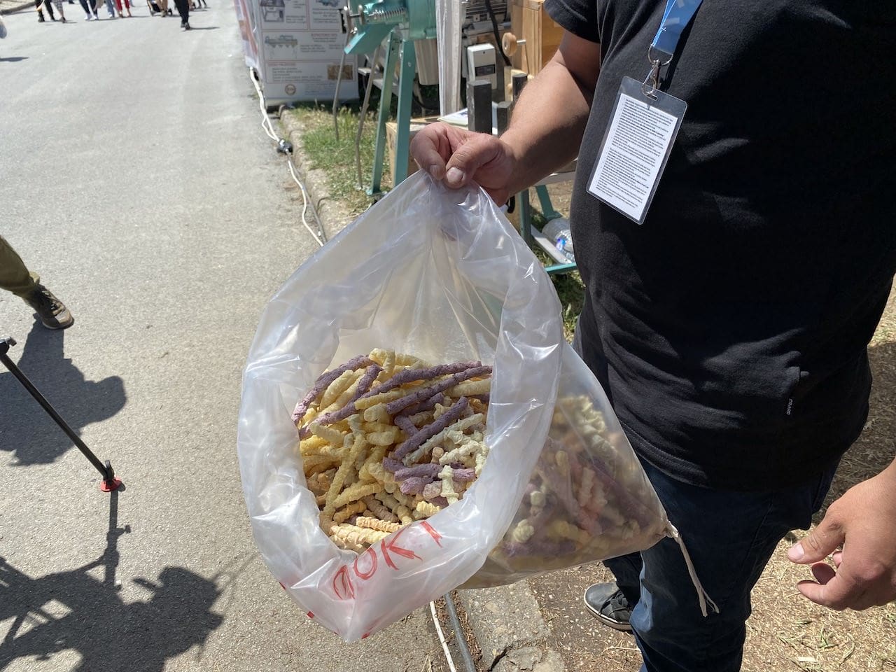 Međutim, nama su pažnju privukle kese šarenog flipsa na jednom štandu koji se jedva i primeti u moru traktora i dronova. U pitanju je štand Lajoša Farkaša iz Bačkog Petrovog Sela koji je taj smoki sam napravio.