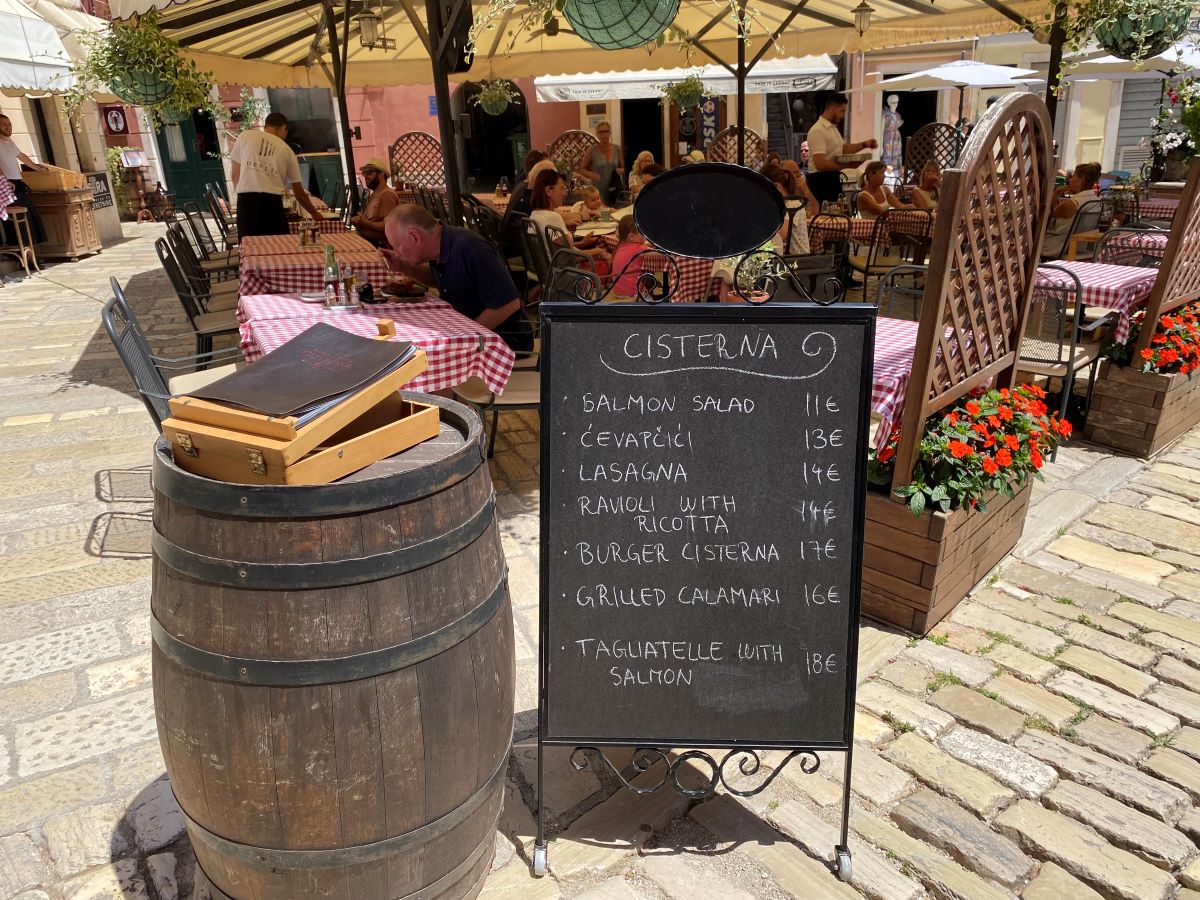 U Rovinju, gradu koji se najviše orijentisao ka gore pomenutom „elitnom turizmu“, kafa košta između 1,70 evra i 4 evra, dok ćete čašu vina u kafiću tik do mora platiti oko 3 evra. Restorani su naravno skuplji pa ove cene idu na gore. Kokteli su takođe pristupačni, a najjeftiniji je 8 evra. Točeno pivo, sa pogledom na stari grad Rovinj će vas stajati oko 4 evra.